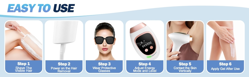 - 5 Adjustable Energy Levels for Precise Hair Removal: This laser hair removal device features 5 customizable energy levels, allowing you to tailor treatments to your skin type and sensitivity. Suitable for use on the face, arms, legs, back, and more, it provides effective IPL hair removal for women, delivering smooth, hair-free skin with every session.